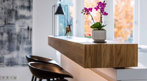 Eine Villa aus dem frühen 20. Jahrhundert, in den 1980er Jahren durch Anbauten ergänzt und als Nachsorgeklinik genutzt, wurde umfassend saniert und zu einem modernen Einfamilienhaus umgestaltet.