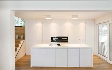 Ein Flachdachbau aus den 1980er Jahren wurde umfassend modernisiert und für eine junge Familie neu strukturiert. Das Konzept setzt auf eine klare, offene Raumaufteilung, die für mehr Licht und Großzügigkeit sorgt.
